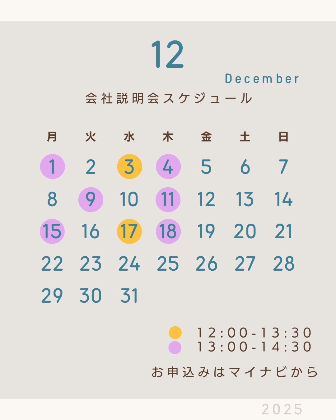 以下のリンク マイナビサイトよりご希望の日程を選択してください